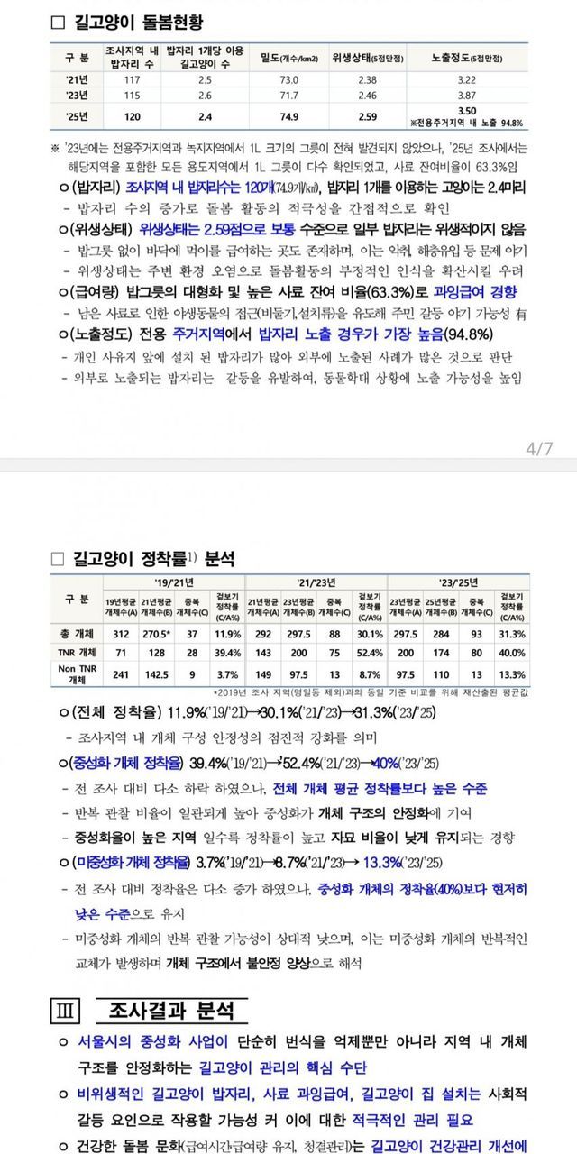 중성화율이 낮아지고 밥자리가 대형화 되었다는 기사