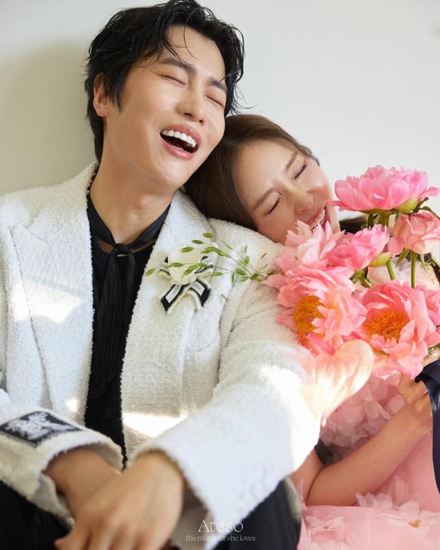 사진 속 신지는 순백의 웨딩드레스를 입고 청초한 매력을 드러냈다. 풍성한 실루엣의 드레스부터 슬림한 라인의 드레스까지 완벽하게 소화하며 눈길을 끌었다. 문원 역시 블랙 턱시도와 클래식한 수트 차림으로 신지와 나란히 서 훈훈한 분위기를 자아냈다. 두 사람은 환하게 웃거나 서로에게 기대는 모습으로 예비 부부의 설렘을 고스란히 전했다.