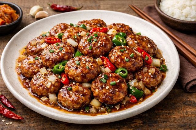 완성된 깐풍동그랑땡 모습. 기사 이해를 돕기 위해 AI를 활용해 제작한 자료 사진입니다. 실제 모습과 다소 차이가 있을 수 있습니다.