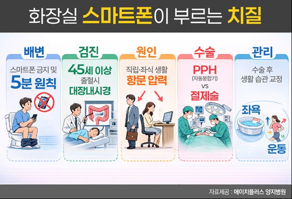 배병구 센터장은 “특히 45세 또는 50세 이상에서 이전에 없던 항문 출혈이 새롭게 생겼다면, 단순 치질로 넘기지 말고 반드시 대장내시경 검사를 받아야 한다”며 “출혈 색깔만으로 치질과 암을 구분하는 것은 매우 위험하다”고 강조했다.