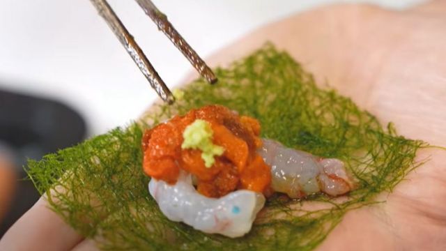 딱새우에 감태와 성게를 올려 먹는 모습. / 유튜브 '입질의추억TV jiminTV'