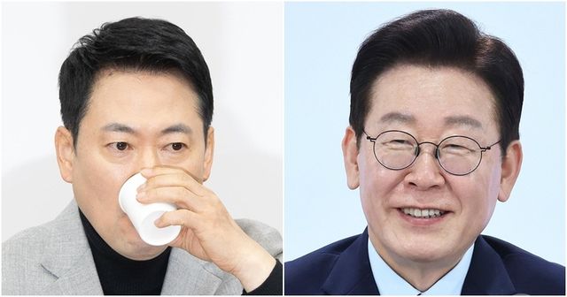 장동혁 국민의힘 대표가 26일 서울 여의도 국회에서 열린 최고위원회의에서 물을 마시고 있다, 이재명 대통령이 27일 전북 전주시 전북대학교에서 열린 ’전북의 마음을 듣다’ 타운홀미팅 간담회에서 발언을 하고 있다. / 뉴스1