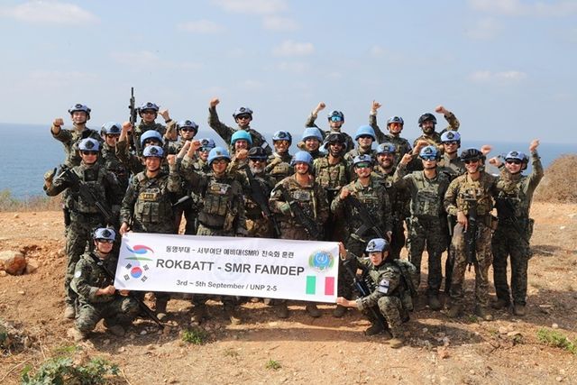 합동참모본부는 레바논의 ‘동명부대’와 남수단의 ‘한빛부대’가 유엔평화유지군(PKO) 소속으로 활동하며 분쟁지역의 안정화와 민간인 보호라는 중요한 임무를 수행하고 있다고 4일 밝혔다. 동명부대 장병들과 서부여단 예비대(SMR) 이탈리아군 장병들이 UNIFIL 사격장에서 친숙화 훈련(FAMDEP)간 연합 전투사격을 마치고 기념촬영을 하고 있다. 2025.10.04 / 합동참모본부 제공