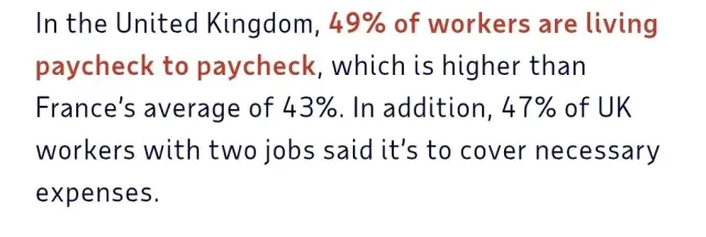실제 이렇게 저축을 못하고 한달 벌어 그 돈을 거의 다 쓰는 paycheque to paycheque 로 살아가는 인구 비중이 유럽 주요국의 경우 4-50%, 미국의 경우 60-65% 에 달함.