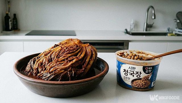 묵은지는 오래 숙성되며 산미와 감칠맛이 짙어진다. 유산균이 농축돼 특유의 깊은 맛을 낸다. 청국장 특유의 강한 향을 묵은지가 잡아주면서도, 국물에 산뜻한 여운을 더한다. 잘 익은 묵은지를 사용하면 설탕을 넣지 않아도 자연스러운 단맛이 배어난다.