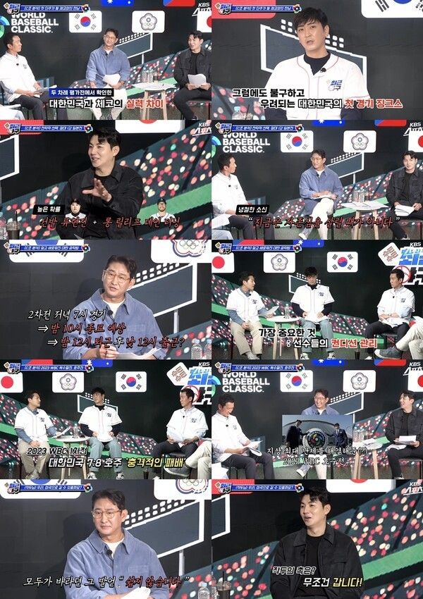 한편, 체코전에 대해서는 "본업이 따로 있는 선수가 많아 승리할 것"이라는 이대형의 낙관론과 "첫 경기 징크스가 있어 방심하면 안 된다"는 심수창의 신중론이 교차했다. '작두맨' 이대형의 3승 1패 8강 진출 전망과 '펠레박' 박용택의 조심스러운 예측이 맞붙은 가운데, 이들의 냉철한 분석과 전략적 승부수가 한국 야구의 명예 회복을 이끌어낼 수 있을지 기대케 한다.