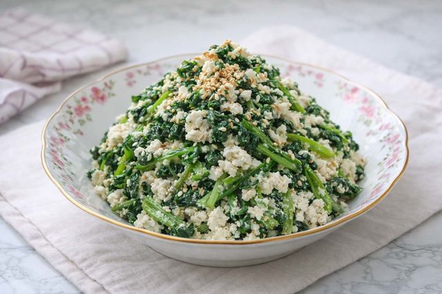 쑥갓두부무침. AI 툴로 만든 사진.