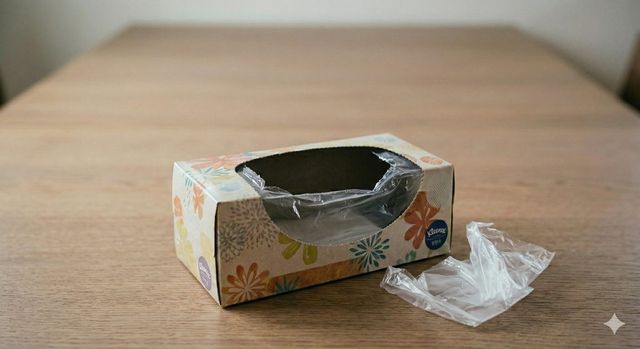 결론부터 말하자면, 이 빈 상자는 주방 서랍 속에서 제멋대로 굴러다니는 비닐봉지와 위생 장갑을 정리하는 데 가장 완벽한 도구다.