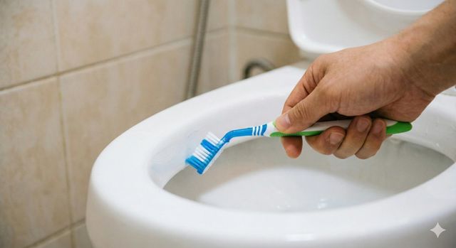 칫솔로 변기 청소하는 모습 (AI로 제작됨)