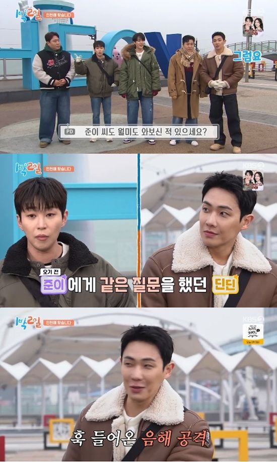 딘딘은 월미도로 오면서 이준에게 같은 질문을 했더니 이준이 "전 여자친구랑 왔다"는 대답을 했다고 폭로했다.