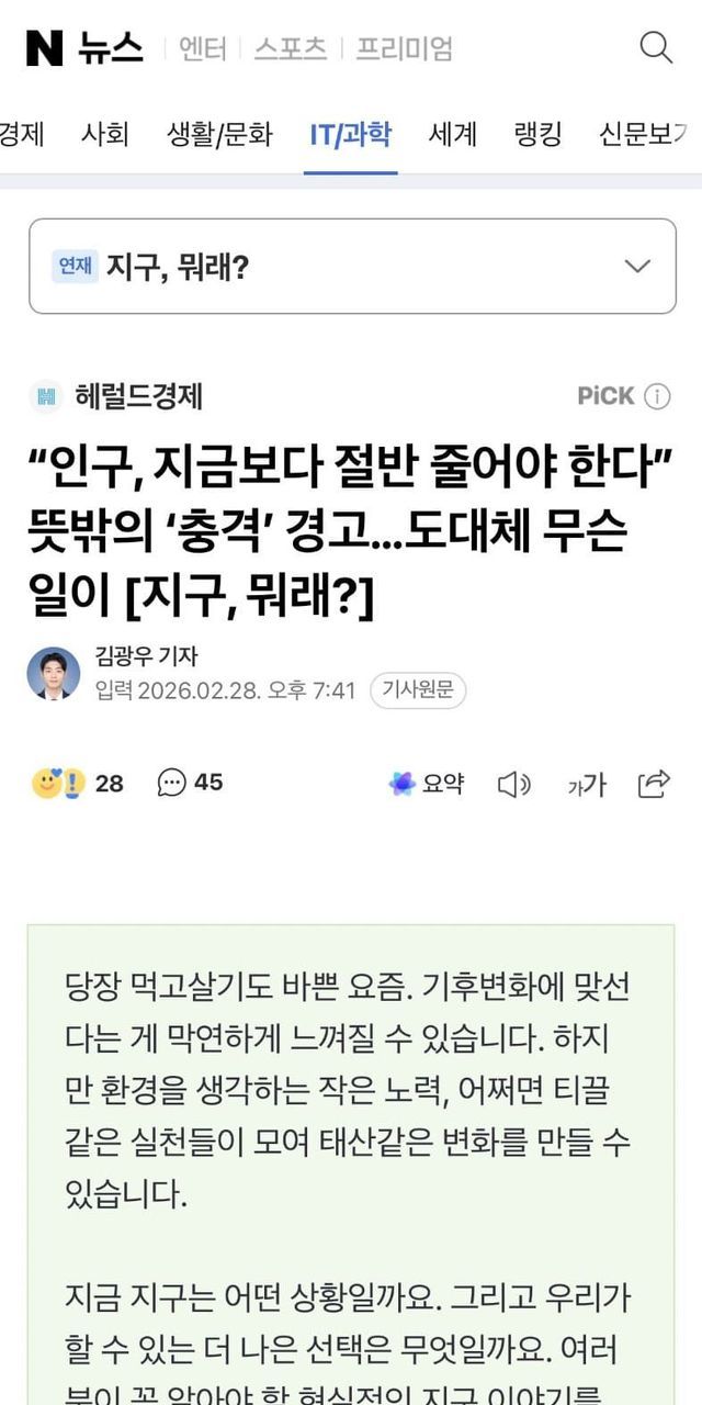 “인구, 지금보다 절반 줄어야 한다” 뜻밖의 ‘충격’ 경고