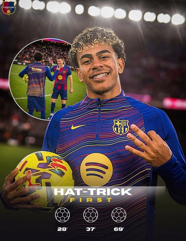 야말의 프로 커리어 첫 번째 해트트릭이다. 축구 통계 매체 ‘옵타’에 따르면 야말의 해트트릭은 라리가 무대에서 나온 21세기 최연소 해트트릭이다. 그는18세 230일의 나이로 해트트릭하며 종전 기록이었던 지오바니 도스 산토스의 19세 6일을 뛰어넘었다.