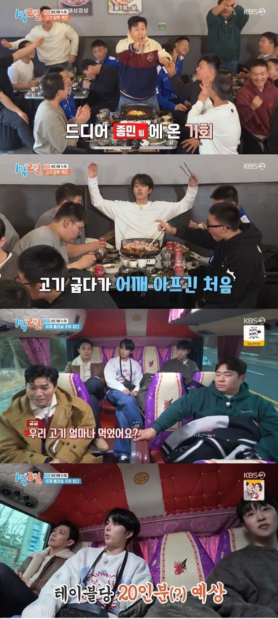 문세윤이 정답 소백을 맞힌 뒤 이준, 딘딘, 유선호가 차례로 정답을 맞히며 고기 리필을 했다.