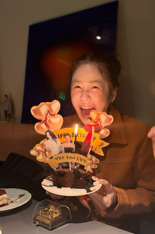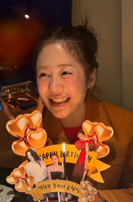 공개된 사진 속 고현정은 팬들이 선물한 특별한 케이크를 들고 환하게 웃고 있다.