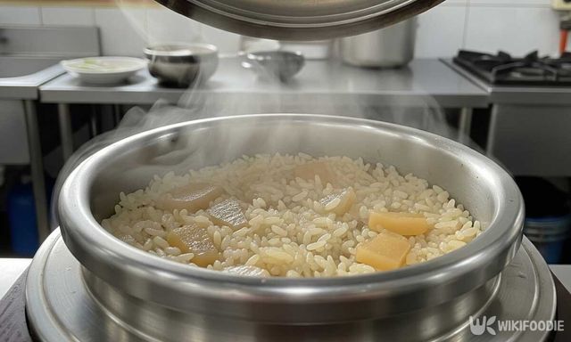 이때 소금을 아주 약간 넣어 간을 밑바탕으로 깔아주면 무의 단맛이 도드라진다. 이후 불린 쌀을 넣고 가볍게 섞은 뒤 물을 부어 센 불에서 끓인다. 끓기 시작하면 약불로 낮추고 뚜껑을 닫아 15~18분 정도 익힌다. 불을 끈 뒤 5분 정도 뜸을 들이면 쌀알이 단단하게 자리 잡는다.