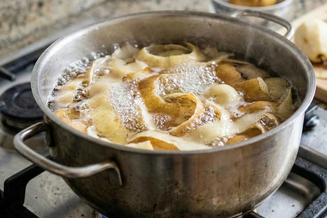 배 껍질을 끓는 물에 넣은 모습. 기사 이해를 돕기 위해 AI를 활용해 제작한 자료 사진입니다. 실제 모습과 다소 차이가 있을 수 있습니다.