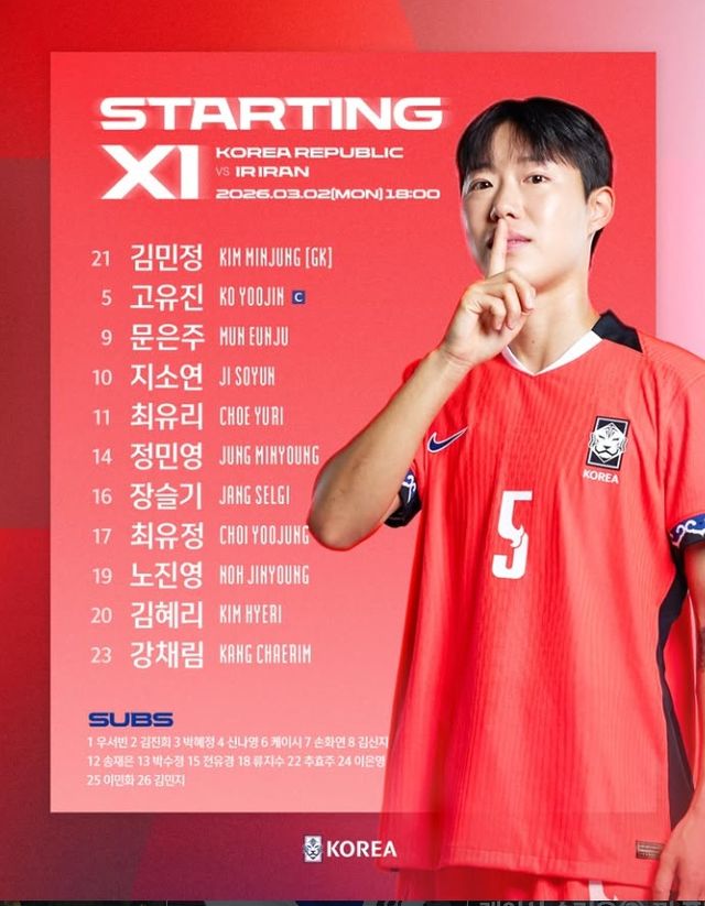 상대 이란은 최근 자국 내 정치·군사적 긴장 속에서도 대회에 참가했다. 미국과 이스라엘이 이란에 공습을 가했다. 그 결과 이란 최고 지도자인 하메이니가 사망했다. 이란 대표팀은 외부 상황보다 경기에 집중하겠다는 입장이다. 마르지예 자파리 감독은 “우리는 축구를 하러 왔다”며 말을 아꼈다.