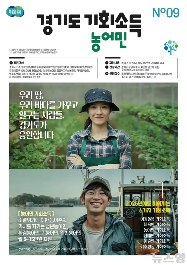 (뉴스영 이현정 기자) 경기도가 3일부터 용인시·파주시를 시작으로 도내 26개 시군에서 '2026 농어민 기회소득' 신청을 받는다.