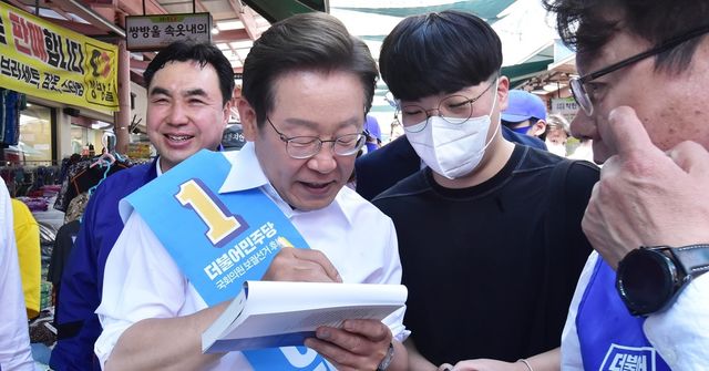 2022년 5월 31일 인천 계양을 보궐선거에 출마한 이재명 더불어민주당 후보가 지지자에게 사인해주고 있다. / 뉴스1