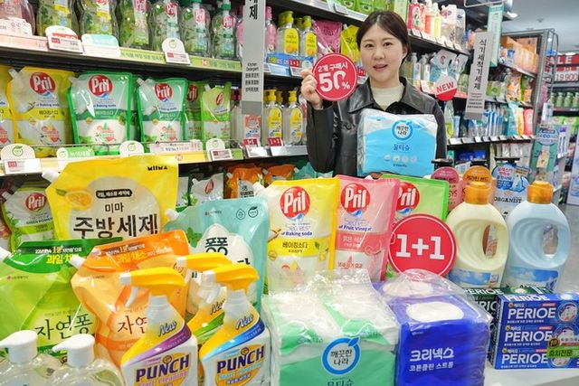 주방 위생 관리를 위한 세제류의 할인 폭을 설정했다. '자연퐁', '프릴' 등 주요 브랜드 주방세제 50여 종과 '홈스타 맥스프레쉬·핑크파워' 등 스프레이형 주방용 세정제 30여종을 2개 이상 구매 시 50% 할인한다.