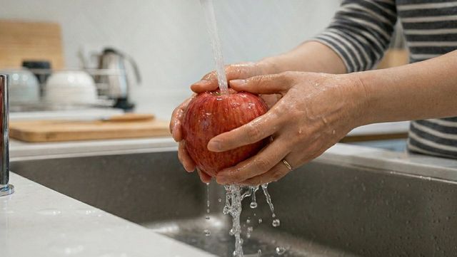 사과를 씻는 모습. AI가 생성한 자료사진.