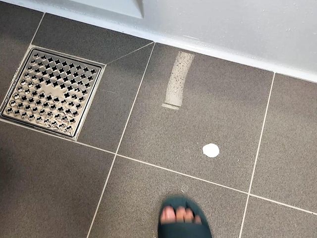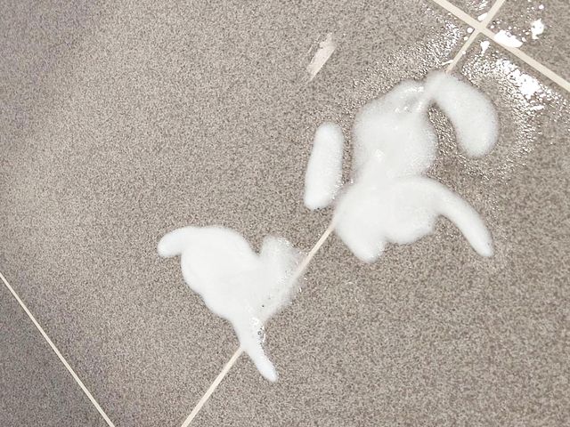 비누 거품, 샴푸, 바디워시 잔여물이 바닥에 남아