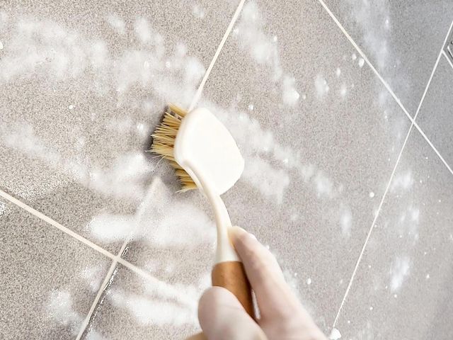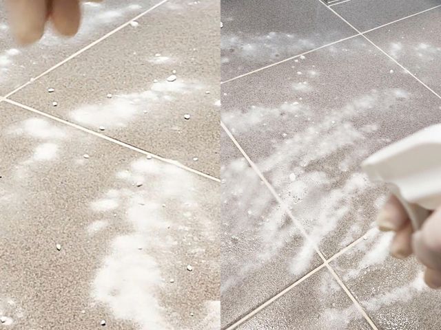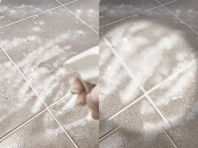 먼저 욕실 바닥 전체에 베이킹소다를 넉넉히 뿌려주세요.