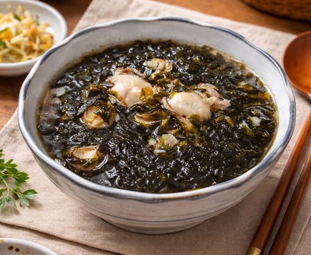 진도를 비롯한 서남해 일대의 어민들이 이 물김을 국으로 끓여 먹을 때 단독으로 쓰는 법이 없다. 이 지역에서 겨울 물김국의 단짝은 굴 아니면 산낙지다. 굴과 낙지 모두 같은 계절에 가장 맛이 좋아지는 식재료. 자연이 알아서 제철 재료를 한 자리에 모아둔 셈이다. 조리법은 단순하다. 멸치나 다시마로 국물을 난 뒤 씻어낸 물김을 풀어 넣고 굴이나 낙지를 더해 가볍게 끓인다. 국간장으로 간을 맞추는 정도가 전부다. 양념이 복잡할 이유가 없다. 물김의 감칠맛, 굴의 달고 고소한 맛, 낙지의 시원한 맛이 알아서 층을 이루며 국물을 채우기 때문이다.