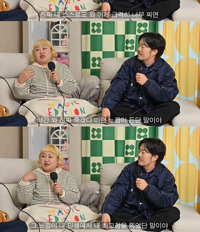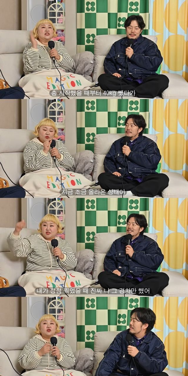 "지금도 날씬한 건 아니"라고 강조한 홍윤화는 "도대체 뭘 뺐냐는 말이 많다. 그 당시엔 진짜로 나무보다 더 컸다. 내 스스로도 급격히 너무 찌면 '와, 진짜 죽겠다' 이런 느낌이 드는데 그 느낌이 내 인생에서 최고점을 찍었다. 그때부터 뺀 게 40kg"라며 추가 감량 계획도 밝혔다.