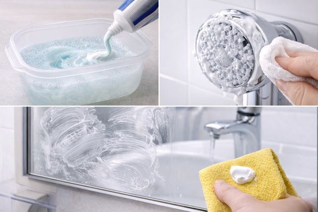 욕실 수도꼭지나 샤워기 헤드에 허옇게 앉은 물때는 욕실을 지저분하게 만드는 주범이다. 마른 천에 치약을 살짝 묻혀 수전 표면을 닦은 후 물로 헹구면 눈부신 광택이 살아난다. 또한 욕실 거울을 치약으로 닦아내면 세정 효과는 물론, 치약 성분이 얇은 코팅막을 형성하여 샤워 중 발생하는 지독한 김 서림 현상을 현저히 줄여주는 일석이조의 효과를 누릴 수 있다.