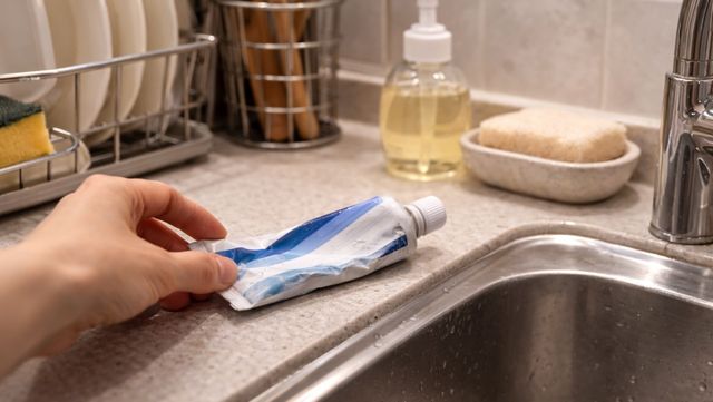 주방에 치약을 둔 모습 / 기사 내용을 바탕으로 제작한 AI 이미지
