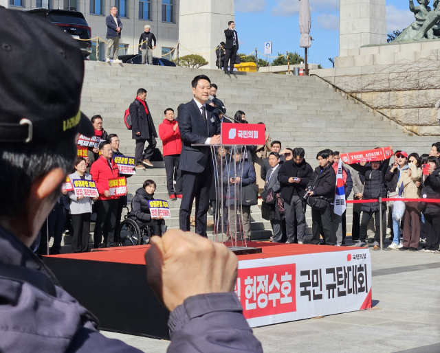 국민의힘은 이날 오후 국회에서 당 소속 국회의원과 당협위원장 등이 참석한 가운데 '사법독립 헌정 수호를 위한 대국민 호소 국민 대장정' 규탄대회 출정식을 열었다. 이들은 출정식을 마친 뒤 국회를 벗어나 여의도공원, 마포대교 등을 거쳐 청와대까지 이동하는 도보 투쟁에 나섰다.