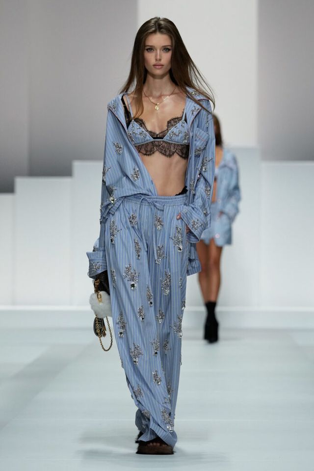 NOTE 매 시즌 남성복과 여성복의 테마를 연결해 변주해온 돌체앤가바나. 2026 S/S 남성 컬렉션, ‘파자마 보이스(Pajama Boys)’의 바통을 건네받아 다시금 흥겨운 파자마 파티로 우리를 초대했다. 도메니코 돌체와 스테파노 가바나는 남성복 테일러링의 정교함에 매혹적인 관능미를 결합하고, 편안하면서도 존재감있는 실루엣을 고안해 파자마 코어를 하이패션으로 끌어올렸다. 하우스 특유의 유쾌한 위트가 자연스럽게 녹아든 컬렉션.