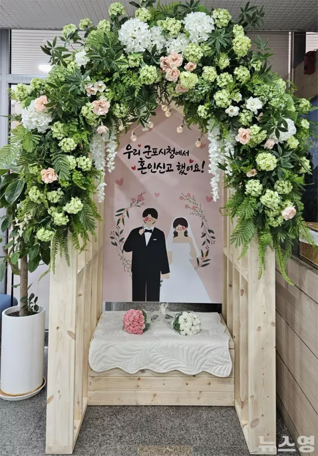 (뉴스영 이현정 기자) 군포시가 3일부터 청사 1층 민원봉사실에 신혼부부를 위한 '혼인신고 포토존'을 설치하고 운영에 들어갔다.