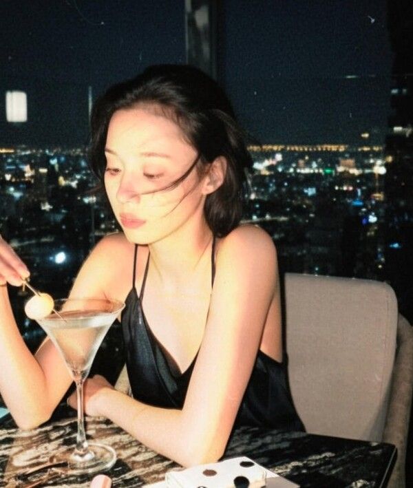 특히 윈터의 상징과도 같은 단발 헤어스타일은 도도하고 시크한 매력을 배가시켰다. 마티니 잔을 앞에 둔 채 무심한 표정으로 카메라를 응시하는 모습은 평소 무대 위에서 보여주던 귀여운 이미지와 상반되는 성숙한 아우라를 풍겼다. 윈터 특유의 몽환적인 눈빛은 도시의 불빛과 어우러져 한 편의 화보 같은 분위기를 완성했다.