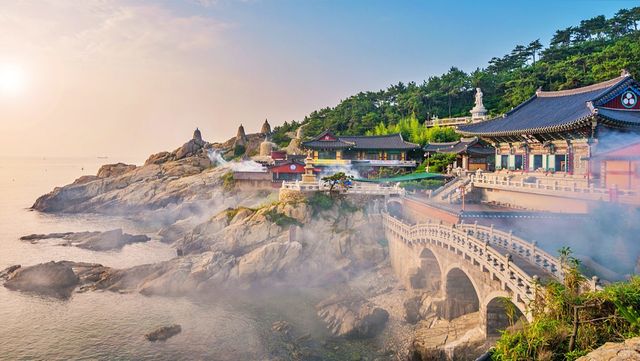 부산 기장군 기장읍 해안에 위치한 해동용궁사는 1376년 고려 공민왕의 왕사였던 나옹대사가 창건했다. 한국의 3대 관음성지 중 한 곳으로 꼽히는 이곳은 본래 보문사라 불렸으나, 임진왜란 당시 화마로 소실되는 아픔을 겪기도 했다. 이후 1930년대 초 통도사의 운강 스님이 중창하며 명맥을 이었고, 1974년 주지로 부임한 정암 스님이 관음도량으로 복원하는 과정에서 현재의 이름을 갖게 되었다. 정암 스님이 백일기도 중 흰 옷을 입은 관세음보살이 용을 타고 승천하는 꿈을 꾸었다는 일화는 사찰의 신비로운 분위기를 뒷받침한다.