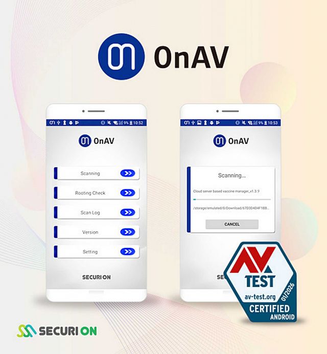 AI 기반 모바일·IoT 보안 기업 시큐리온의 안티바이러스 솔루션 OnAV가 AV-TEST 인증 38회를 획득했다.