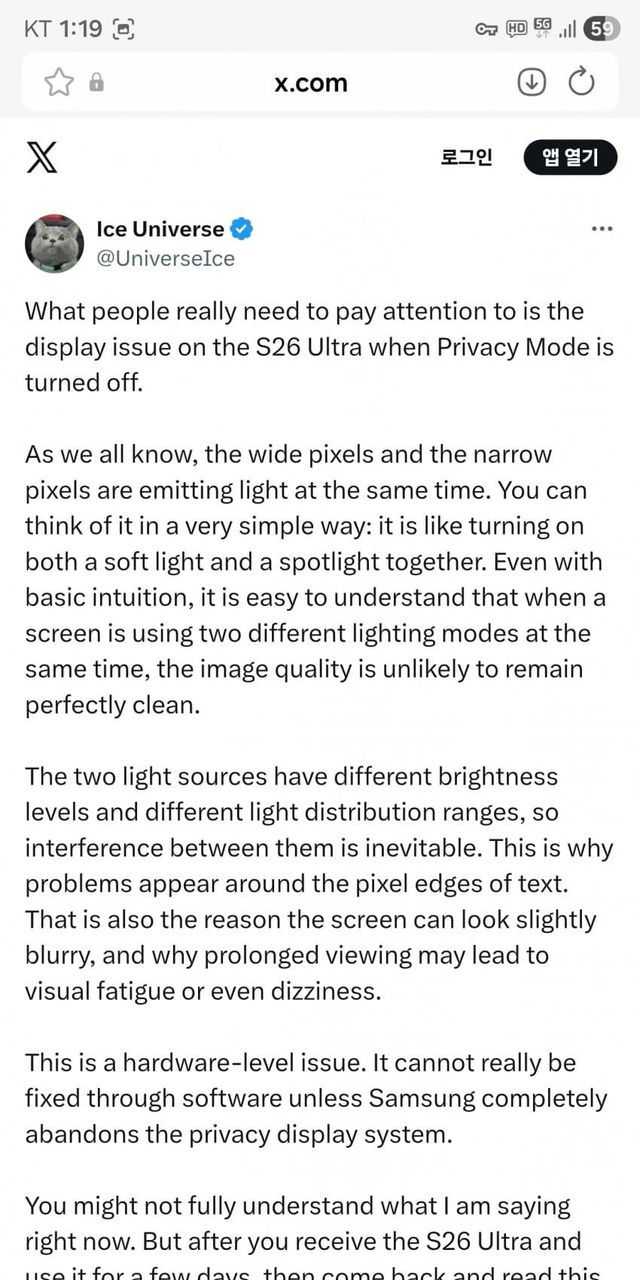 갤갤엽충이들 평소에는 빙냥이 말이라면 똥으로 메주를써도 믿어주더만 S26울트라 디스플레이 이슈글은 흐린눈하면서 안본척 이중인격 오지는중ㅋㅋ