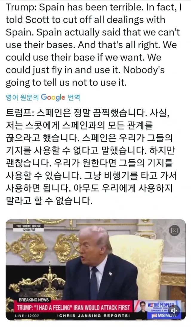 4. 그 와중에 스페인 상관없이 기지를 사용하겠다고 발언