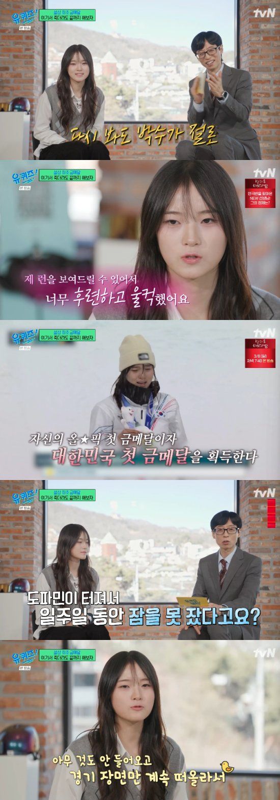 4일 방송된 tvN 예능 프로그램 '유 퀴즈 온 더 블럭'에서는 골절을 이겨내고 설상 종목 사상 첫 금메달을 차지한 17세 스노우보더 최가온이 출연해 이야기를 나눴다.