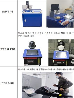 KF80은 평균 입자크기 0.4μm를 80% 이상 차단하며 안면부 흡기저항 60Pa 이하, 안면부 누설률 25% 이하 기준을 충족해야 한다.