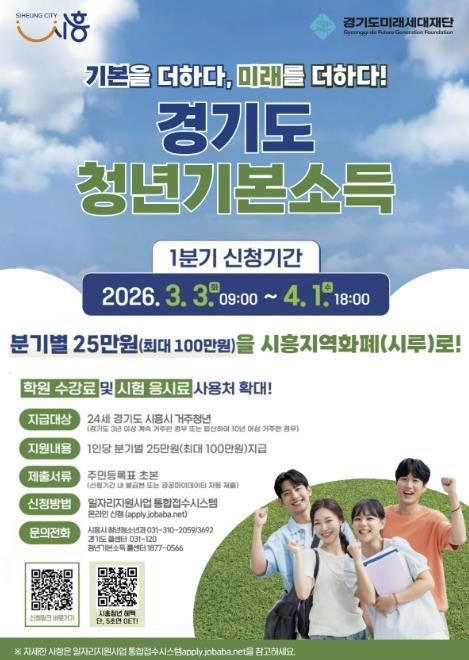 [와이뉴스] 시흥시는 청년의 사회적 기본권 보장과 지역경제 활성화를 위해 4월 1일까지 ‘2026년 1분기 청년기본소득’ 지급 신청을 받는다.