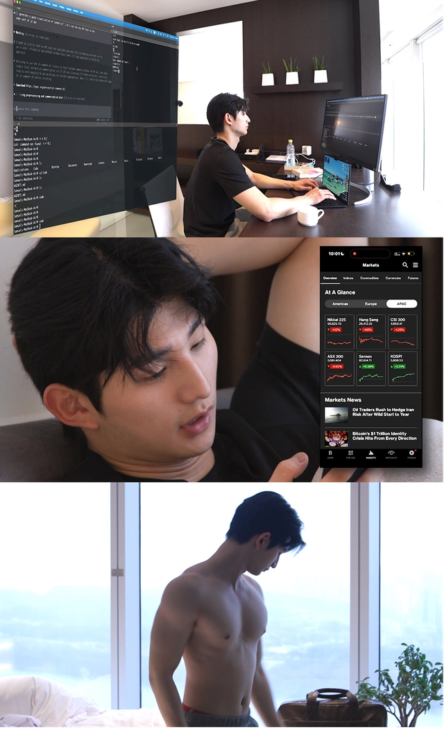 방송에서는 이성훈의 아침 일상도 담긴다. 한강 뷰가 내려다보이는 특급 호텔 스위트룸에서 기상한 뒤 전 세계 시황을 훑고, 해외 주식과 코인, 금·은 시세, 코스닥까지 폭넓게 스캔하는 모습이 예고됐다. 영어 원문으로 뉴스와 시황을 읽으며 분석하는 장면도 공개될 예정이다.