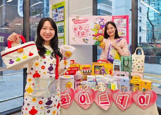 BGF리테일(282330)은 자사 편의점 CU가 화이트데이를 맞아 포켓몬, 텔레토비 등과 협업한 상품을 출시한다고 5일 밝혔다. 텔레토비와의 협업 제품은 △텔레토비 홀로그램 방수 가방(1만 8500원) △사각 파우치(1만 8600원) △앞치마(2만 2900원) △줄줄이 키링(8800원) △텀블러 키링(9000원) 등이다.