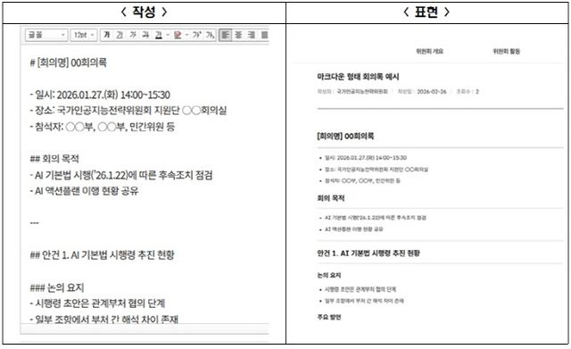 마크다운 형식은 국제적으로 널리 사용되는 문서 형식으로 AI 학습 등에 주로 활용하는 만큼, 이번 전환을 통해 축적되는 정책 데이터를 기업들이 AI 모델 개발과 서비스 혁신에 직접 활용할 수 있도록 지원함으로써, 민간 중심의 AI 생태계 활성화에도 기여할 것으로 기대하고 있다.