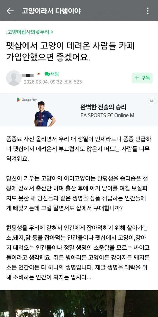 뜬금없이 펫샵충은 가입 못하게 하라+육식은 죄악이다