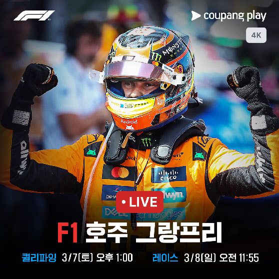 쿠팡플레이는 “2026시즌 F1 모든 그랑프리의 프랙티스, 퀄리파잉, 본 레이스를 포함한 전체 세션을 국내 유일의 4K 초고화질로 생중계한다”고 5일 밝혔다. 또한 시즌 24개 라운드 가운데 10개국 그랑프리 현장을 직접 찾아 생중계와 리포팅을 진행할 예정이다.