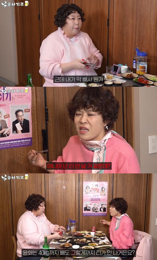 신기루는 "아니다. 저는 (홍)윤화와 좀 다르다"라며 최근 40kg 감량에 성공해 화제를 모은 홍윤화를 언급했다. 신기루는 "윤화는 40kg을 빼도 그렇게까지 티가 안 난다"고 했고 조혜련도 맞장구를 쳤다.