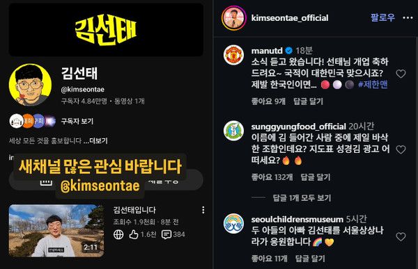 맨유는 인스타그램 공식 계정을 통해 김 팀장의 인스타그램 게시물에 "소식 듣고 왔습니다. 선태님 개업 축하드려요"라며 "국적이 대한민국 맞으시죠? 제발 한국인이면..."이라는 댓글과 해시태그로 '제한맨'을 남겼다