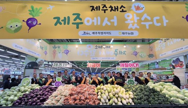제주농협과 제주도는 5일 농협하나로마트 고양점에서 3월까지 진행 중인 '제주 월동채소 페스타' 기념식을 갖고 채소류의 우수성을 홍보하며 할인행사도 진행했다. 제주농협 제공